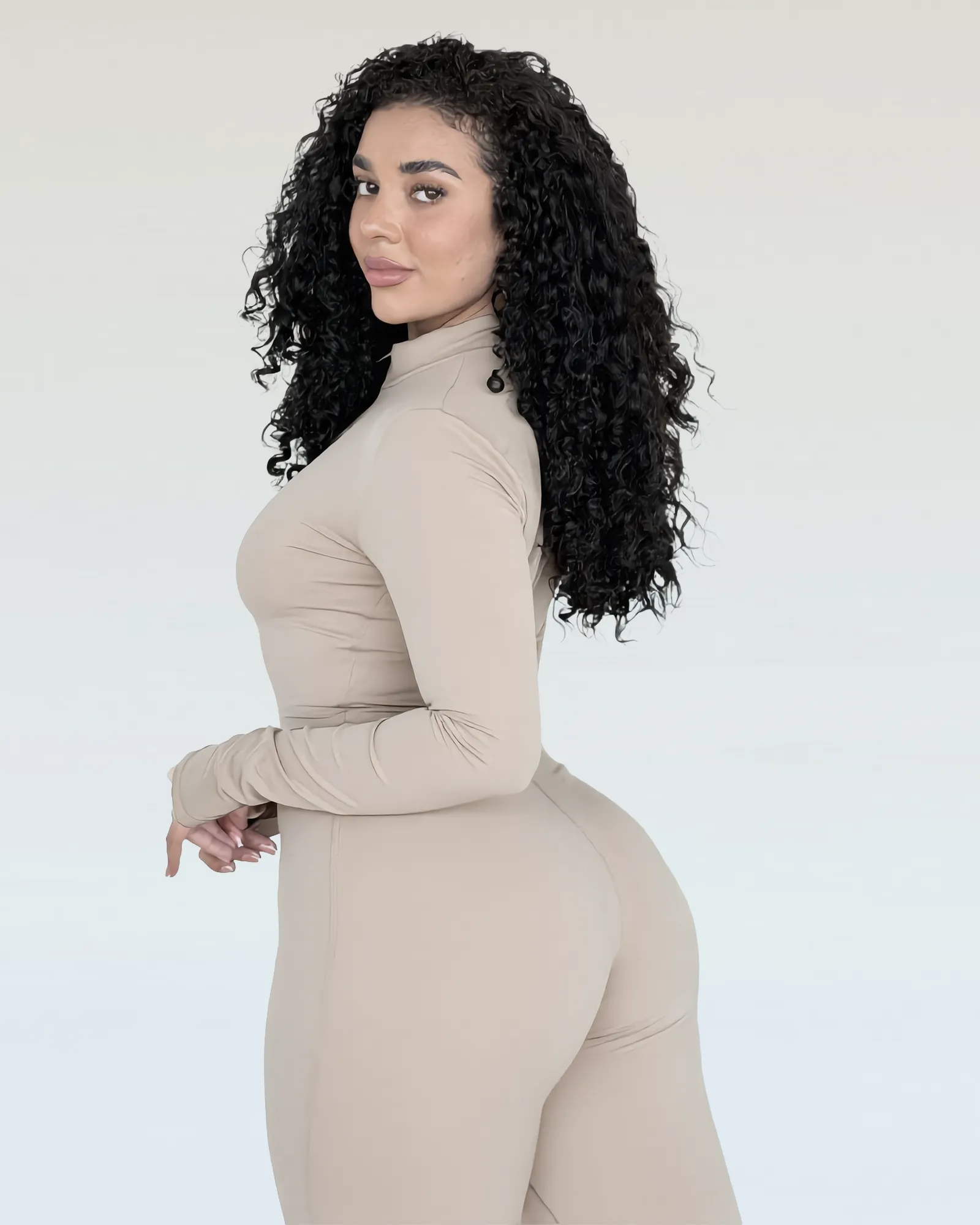 Este conjunto está elaborado en una mezcla premium de 75% nylon y 25% elastano, pensada para ofrecer elasticidad, ajuste favorecedor y comodidad superior. Su tejido se adapta al cuerpo de forma natural, realzando la silueta sin limitar el movimiento.