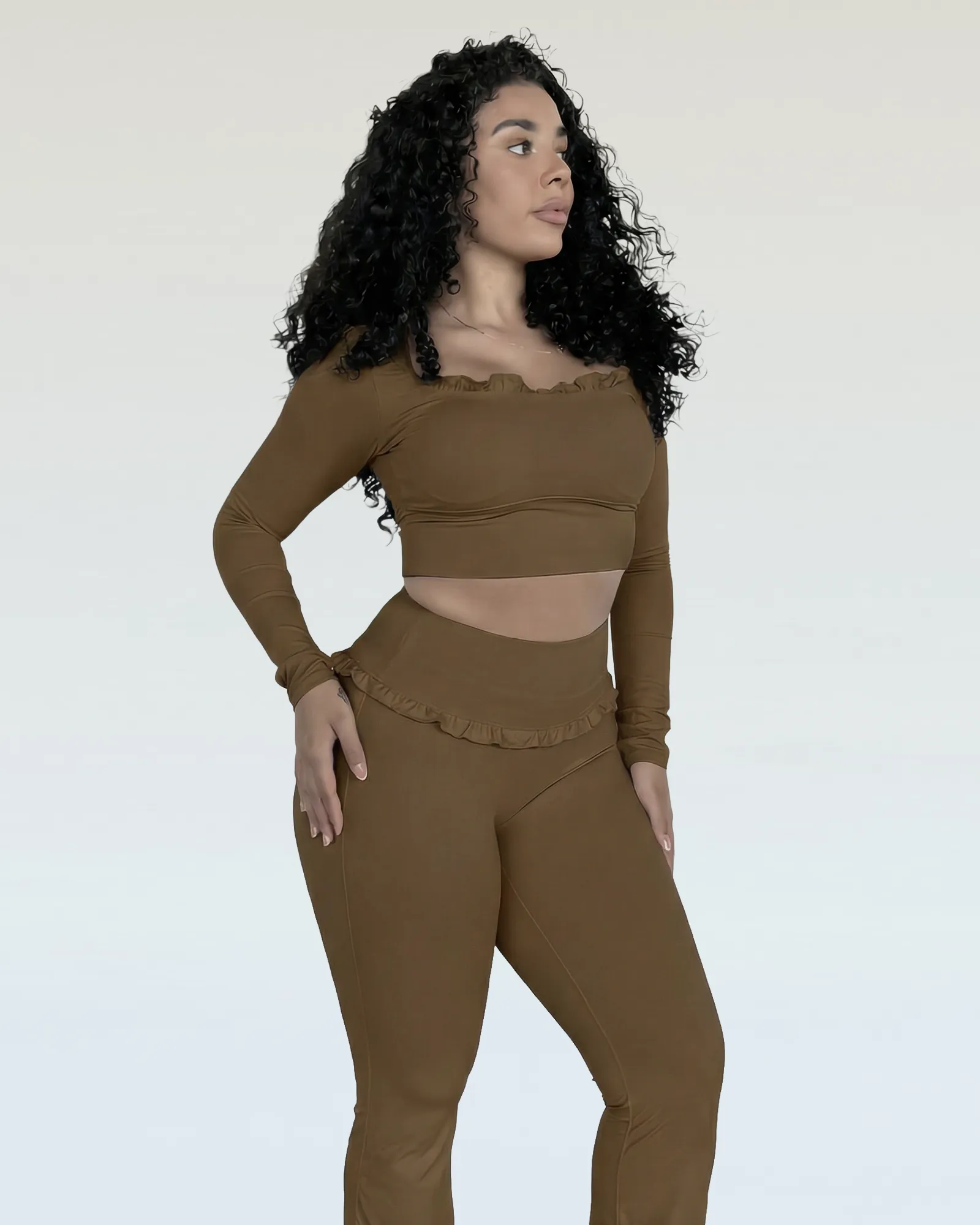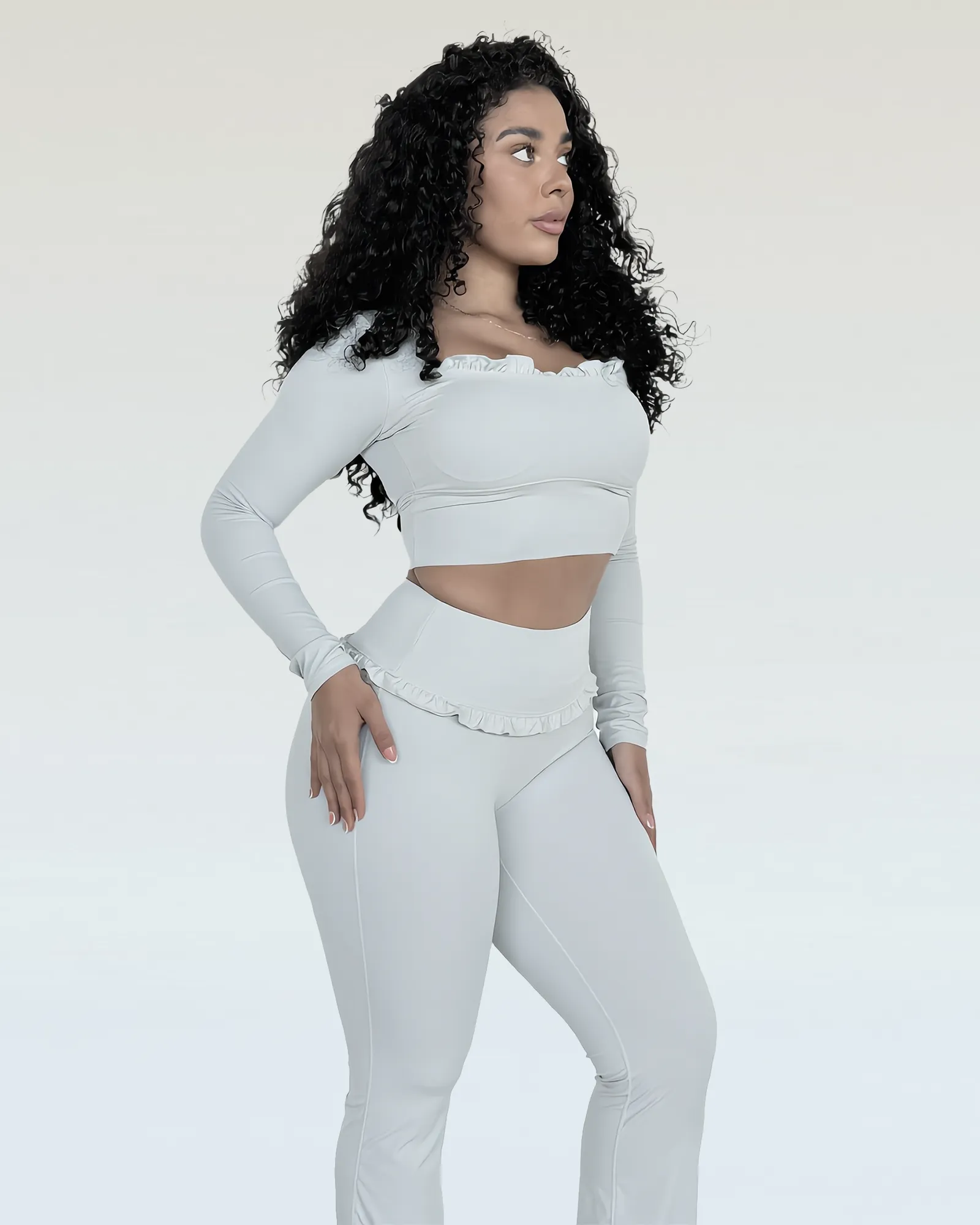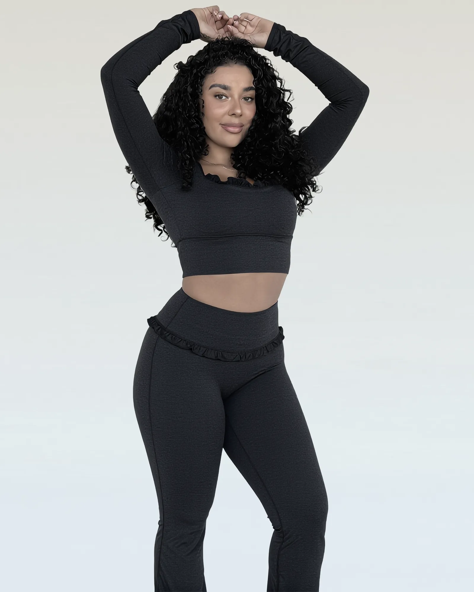 Este conjunto está elaborado en una mezcla premium de 75% nylon y 25% elastano, pensada para ofrecer elasticidad, ajuste favorecedor y comodidad superior. Su tejido se adapta al cuerpo de forma natural, realzando la silueta sin limitar el movimiento.